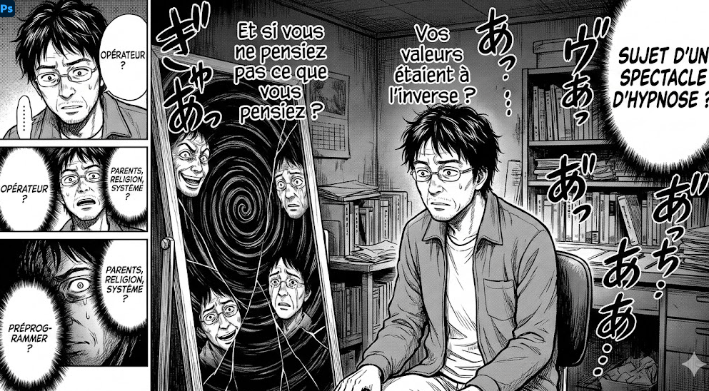 Vous seriez peut-être le sujet d’un spectacle d’hypnose ou sous influence hypnotique. Combien de fois, dans le cadre de l’hypnose, a-t-il été possible de faire détester des choses que nous aimions, de rejeter ce qui nous attirait… Le fait que le facteur critique disparaisse, ou en tout cas que cette possibilité de jauger les choses ne donne plus d’information fiable, nous impose de prendre un parti qui est souvent celui de l’opérateur.