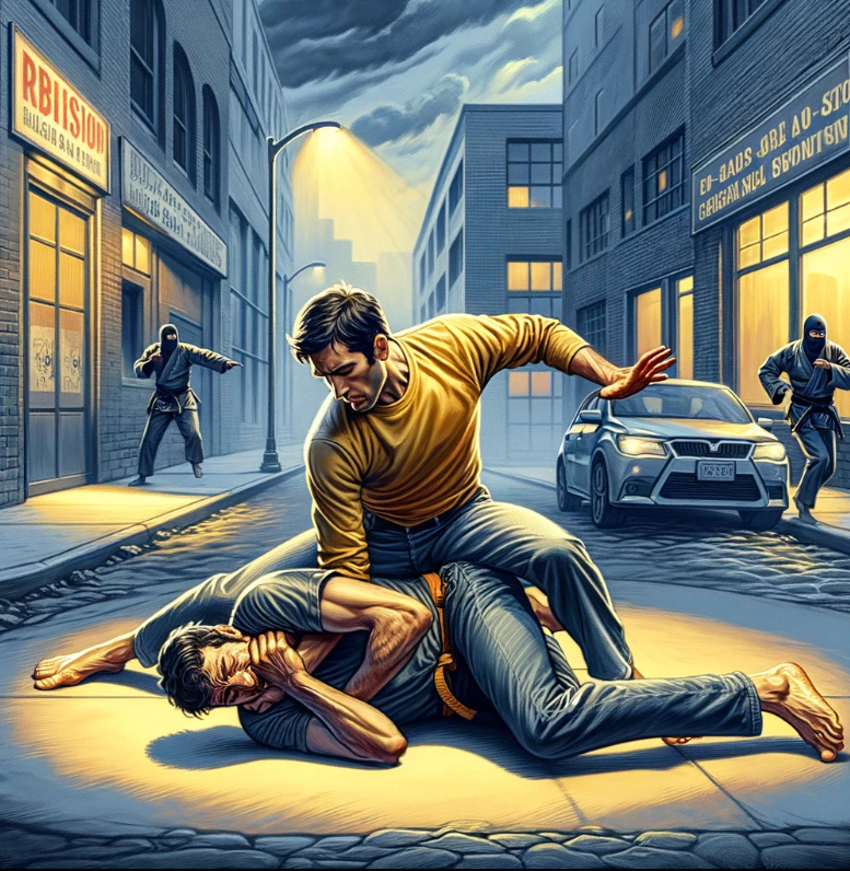 Neutraliser un adversaire par l’étranglement évite les traumatismes sévères et offre un délai précieux pour s’échapper. Face à une clé articulaire en pleine rue, l’hésitation à infliger une telle blessure est naturelle. Pour ceux qui n’ont jamais été témoins de la rupture d’un bras, d’une épaule ou d’une cheville, l’impact psychologique et physique de ce geste est difficilement imaginable ( autant pour le combattant que pour l’agresseur).