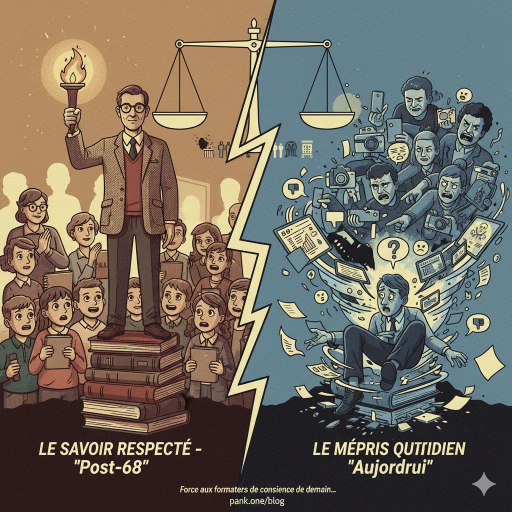 Si les profs odieux pouvaient être recadrés quelques années plus tard par un « retour d’humiliation » avec une exposition de la réussite des élèves qui l’ont été (et je le sais d’autant plus que je l’ai été), aujourd’hui, nos formateurs des potentiels du futur n’ont que du mépris dans leur fonction par un mouvement et non plus par des individualités…