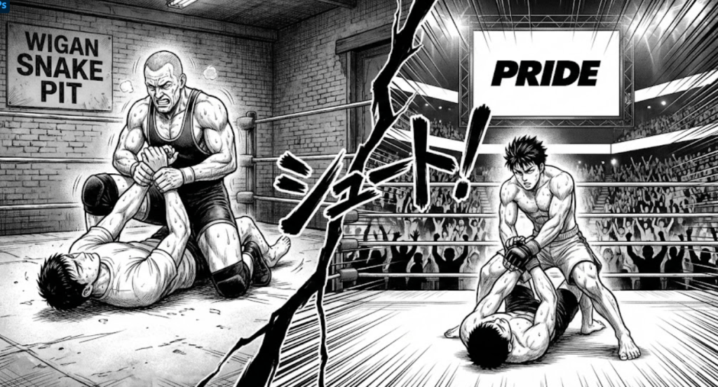 Giving more realism to the fights raised the question of whether they were also capable of being competent without the « show » facet. Hence the likes of Minowaman, Sakuraba, or Takada. All came from Pro Wrestling dojos coached by the British who trained them in a realistic mode.