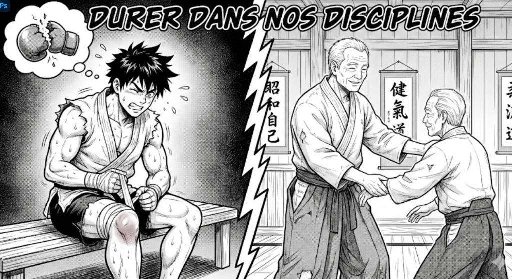 Est-ce que pour durer nous devrions diminuer, voire abandonner le combat ? Mais s’il y a des disciplines qui ont des formes comme des Katas ou Taos, qu’en est-il des systèmes où l’on ne travaille pas seul ? Est-ce que les arts martiaux doivent juste devenir du fitness ou un simple entretien corporel ?