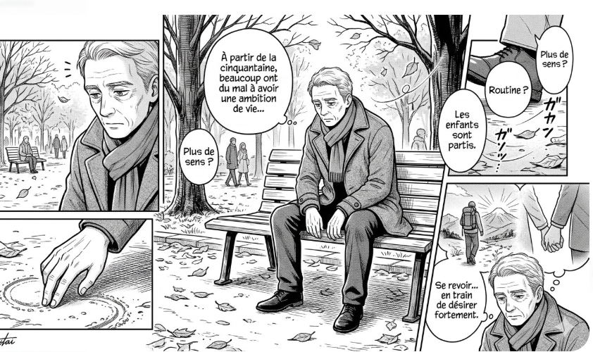 Au fil de mes consultations avec des couples et des individus, je constate de plus en plus fréquemment qu’à partir de la cinquantaine, de nombreuses personnes éprouvent des difficultés à concevoir une ambition de vie précise, des désirs, et, de manière plus fondamentale, à donner un sens à leur existence. Le départ des enfants et la perspective de la retraite peuvent contribuer à ce sentiment de fin de cycle, voire de fin de vie.