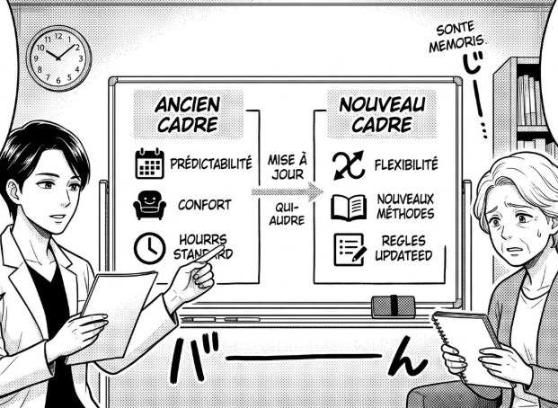 Ce changement n’est pas un réel problème pour les nouveaux consultants qui arrivent. En revanche, cela l’est beaucoup plus pour les personnes habituées, car cela modifie leurs attentes (leurs « micro-cadres »). Lorsque ce changement paraît abrupt et ne correspond pas aux références de travail qu’elles ont eues par le passé, cela peut être perturbant.
