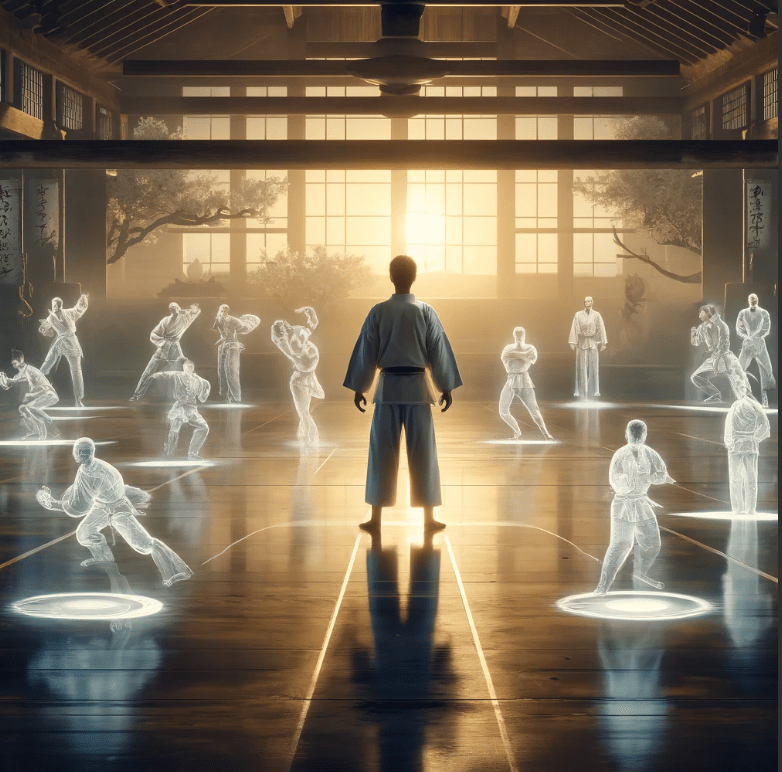 Peut-être pourrait-on y réfléchir dans une perspective plus axée sur le goshin jutsu (self-défense), où, dans ce cas, les blocages selon une logique sen no sen deviennent des attaques. Lorsque Azuma Sensei a créé le Daido Juku Kudo après avoir quitté le Kyokushin, il a retiré presque toutes les formes traditionnelles pour avoir un kihon plus orienté vers la boxe. On a ainsi pu voir un karaté moins traditionnel, sans katas, représentant fièrement les couleurs du style.