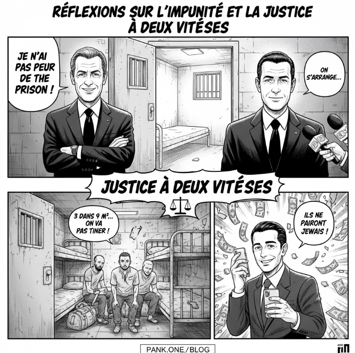 To show the swindler, the fence, the con artist that they risk ending up in failing prisons with three co-detainees in 9 m²… while the former president, he would be alone, without contact with other prisoners. It’s easy to boast and say one isn’t afraid of prison when one knows that the danger in prison is precisely the interactions with other inmates who might want to cause harm and/or seek revenge against a failing system (theirs and that of the state).