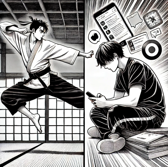 Most martial arts instructors ban phones and any distractions on the tatami. Even during hydration breaks, the time is not meant to check messages.